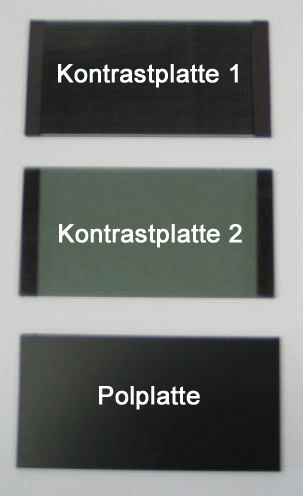 - mit Hilfe der Polarisationsplatte mit hochsensitiven Polfiltern