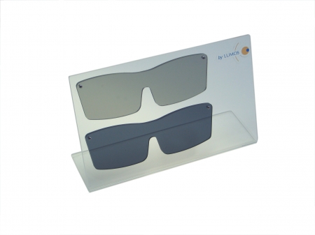 Ein vergleichender Blick durch normale und polarisierende Gläser erschließt Ihrem Kunden schon am Schaufenster die Vorteile von polarisierenden Gläsern.